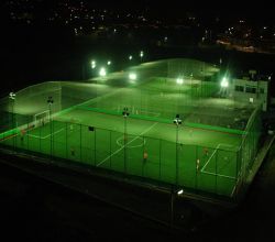 - Saha etrafı 3m yüksekliğinde 3,5 mm et kalınlığında, 50x50mm göz aralığında, daldırma galvanizli PVC kaplı helezon tel örgü ile kaplanır.